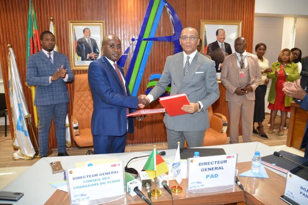 Le Port Autonome de Douala (PAD), représenté par son Directeur Général, Monsieur Cyrus NGO’O et le Conseil des Chargeurs du Tchad (COC-TCHAD), représenté par son Directeur Général, Monsieur Hamid DJOUMINO, ont paraphé ce 28 avril 2025 en fin de matinée, dans la salle de réunions de l’immeuble siège du PAD à Douala, un important protocole d’accord portant sur le cadre de partenariat qui lie les deux institutions. C’était en présence du Consul du Tchad à Douala, du Directeur Général Adjoint du PAD, Charles Michaux MOUKOKO NJOH et le Directeur Général de la Régie du Terminal à Conteneurs du Port de Douala-Bonébéri, Lin Dieudonné ONANA NDOH.
